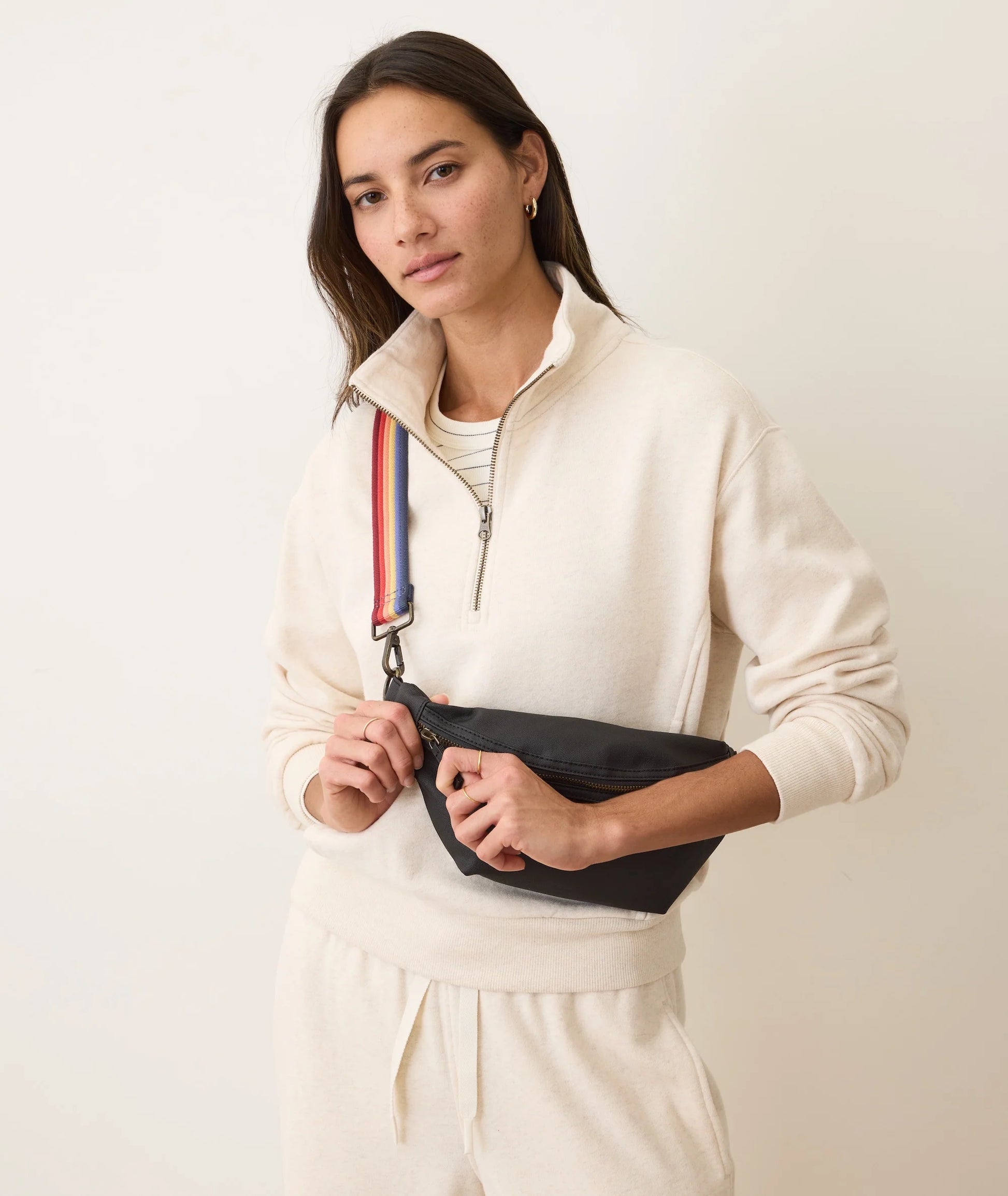 This fanny pack, waist bag, belt bag—whatever you want to call it—truly does it all. Made to fit your phone, keys, wallet, and just general livelihood. Coated with a WhiteGuard finish, so dirt and water are insanely easy to wipe off. It features two adjustable waist straps (rainbow stripe and black) and is made from a durable yet comfortable canvas-like material. The fanny pack is back, baby! And we're here for it.