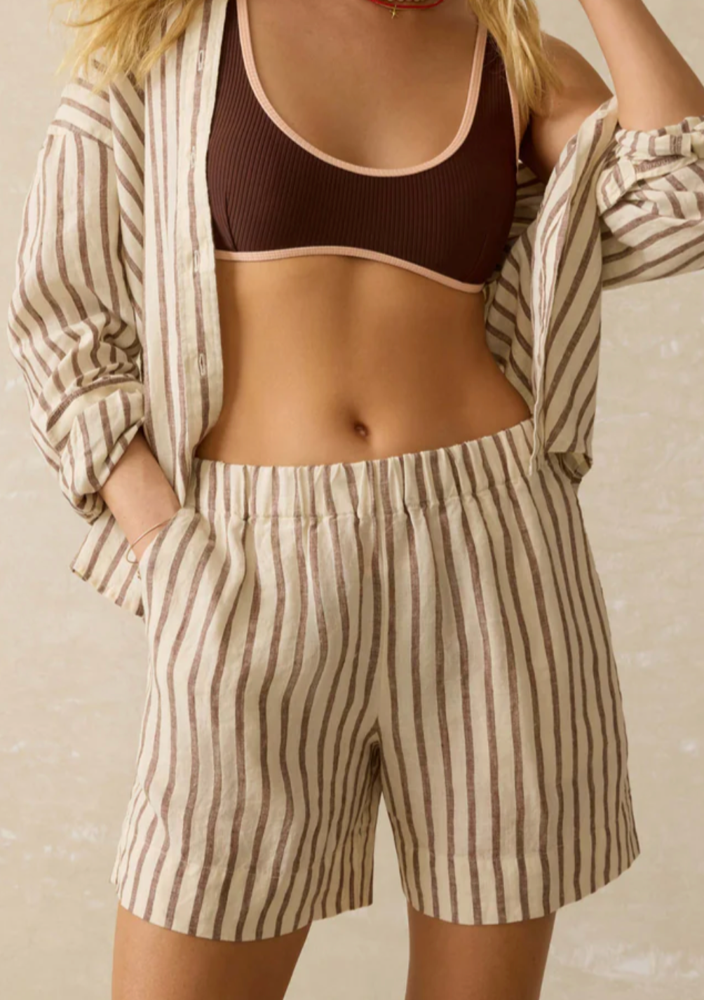 These linen shorts are your summer staple with a twist—think effortless polish meets laid-back ease. Crafted from breathable linen with an elastic waistband for pull-on perfection, they’re made for beach days, breezy errands, and everything in between.