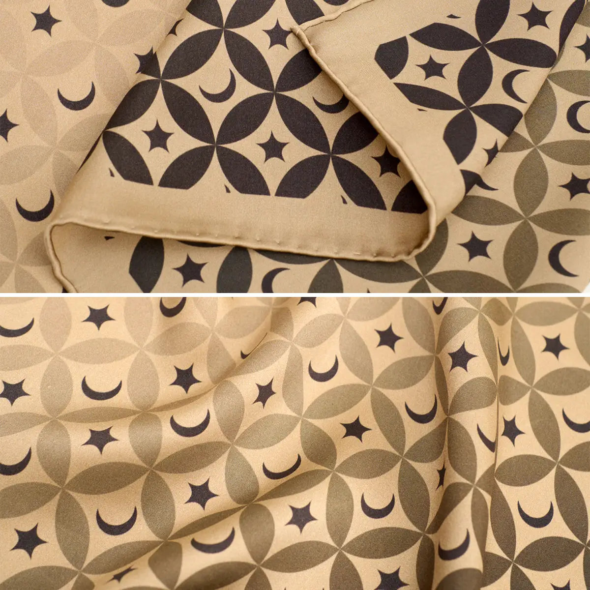 The "Moonlit Stars" Silk Bandana Scarf - Black brings celestial elegance to your wardrobe. Inspired by the enchanting night sky, this luxurious silk bandana features a delicate gradient of black hues adorned with golden star motifs. Its versatile design makes it an essential accessory for any occasion—whether worn as a neck scarf, hair accessory, or tied to your handbag for a touch of cosmic charm.